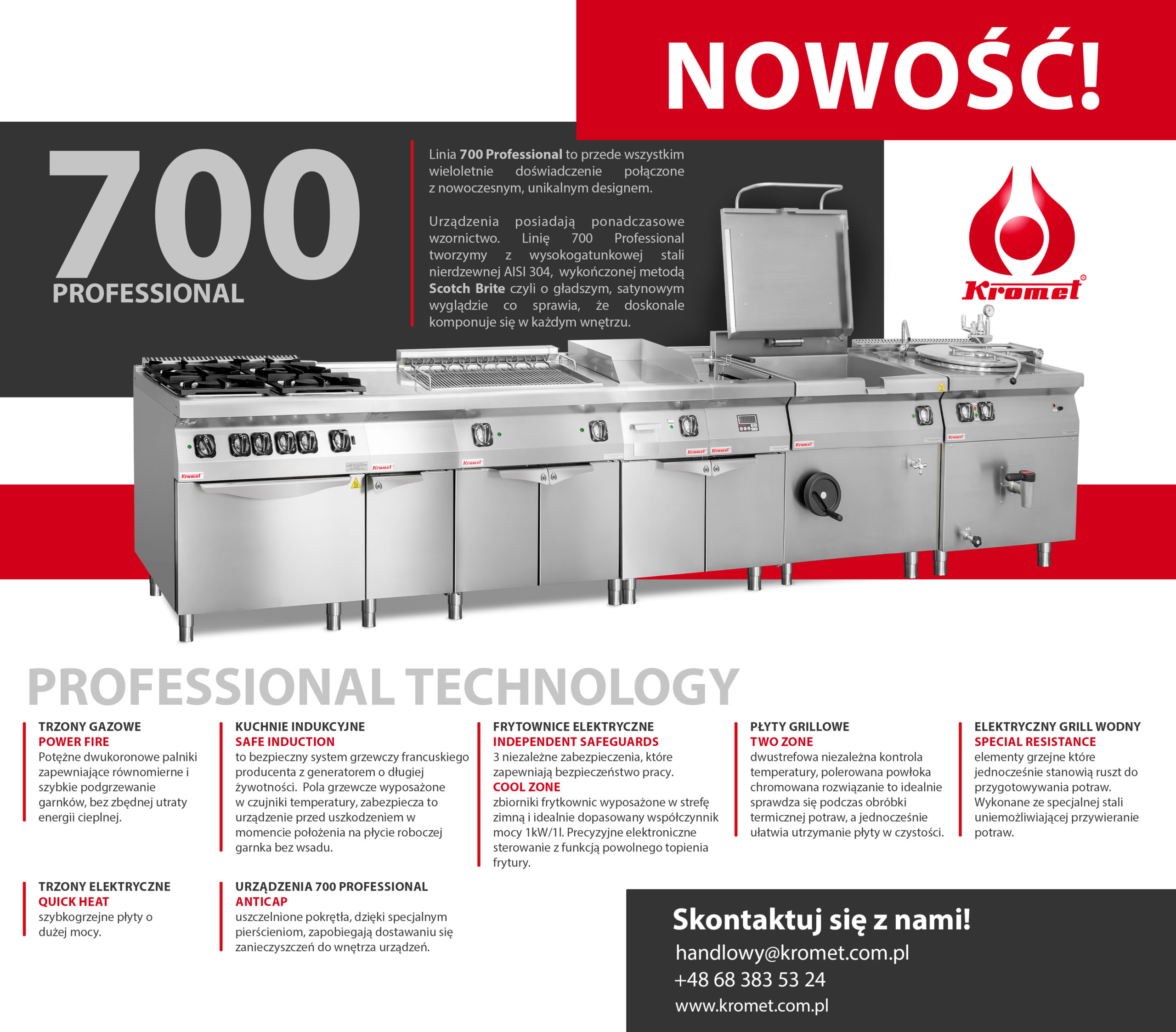 Linia 700 Professional to przede wszystkim wieloletnie doświadczenie połączone z nowoczesnym, unikalnym designem. Urządzenia posiadają ponadczasowe wzornictwo. Linię 700 Professional tworzymy z wysokogatunkowej stali nierdzewnej AISI 304,  wykończonej metodą Scotch Brite o gładszym, satynowym wyglądzie co sprawia, że doskonale komponuje się w każdym wnętrzu.